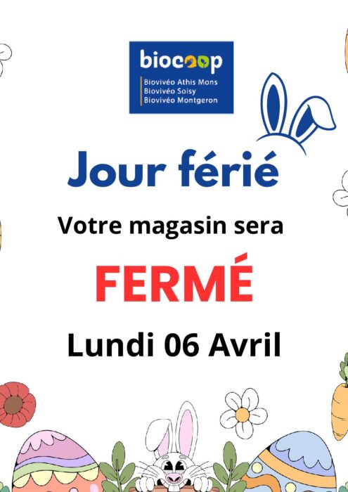 Fermeture des magasins Biovivéo le lundi 06 Avril